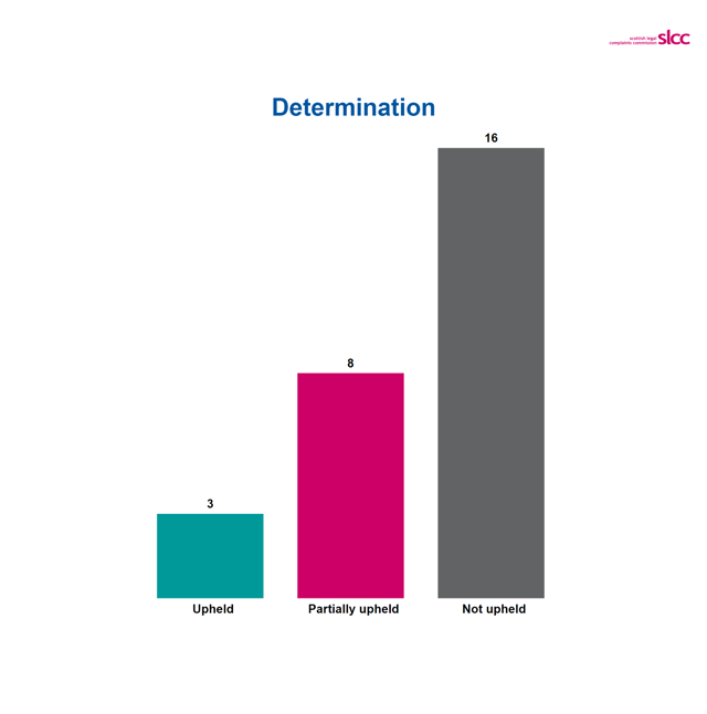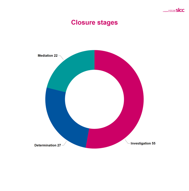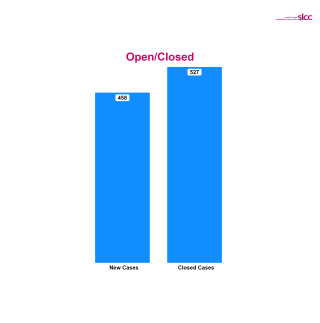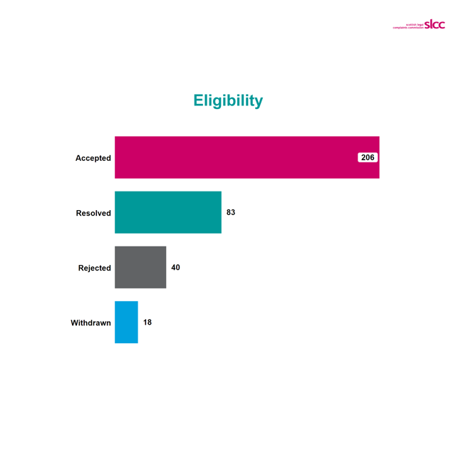 The resolved category includes complaints resolved by the actions of an SLCC investigator before a formal decision to accept or reject the complaint. This includes where the complainer agrees or doesn’t respond to the investigators initial view on the complaint.