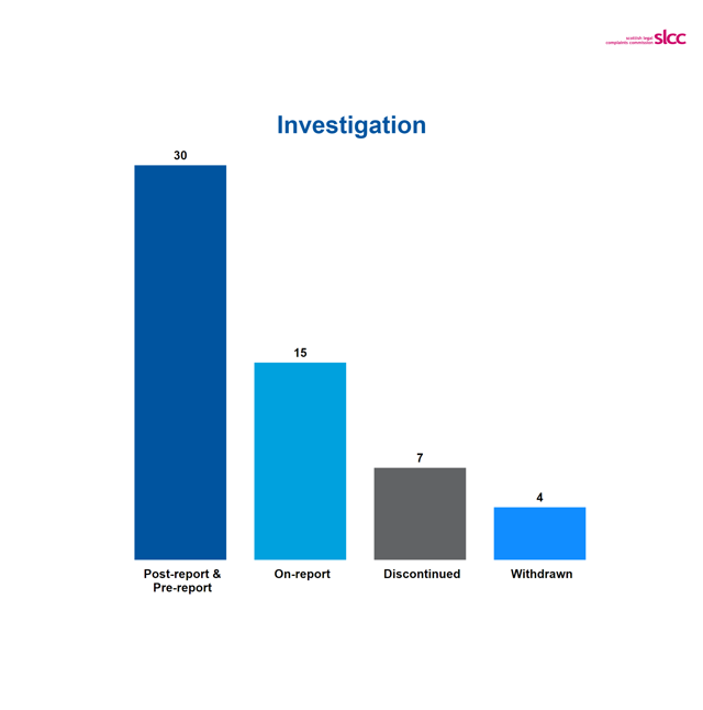 Finally, some complaints are withdrawn by the complainer at investigation or discontinued by the SLCC due to lack of response from the complainer.